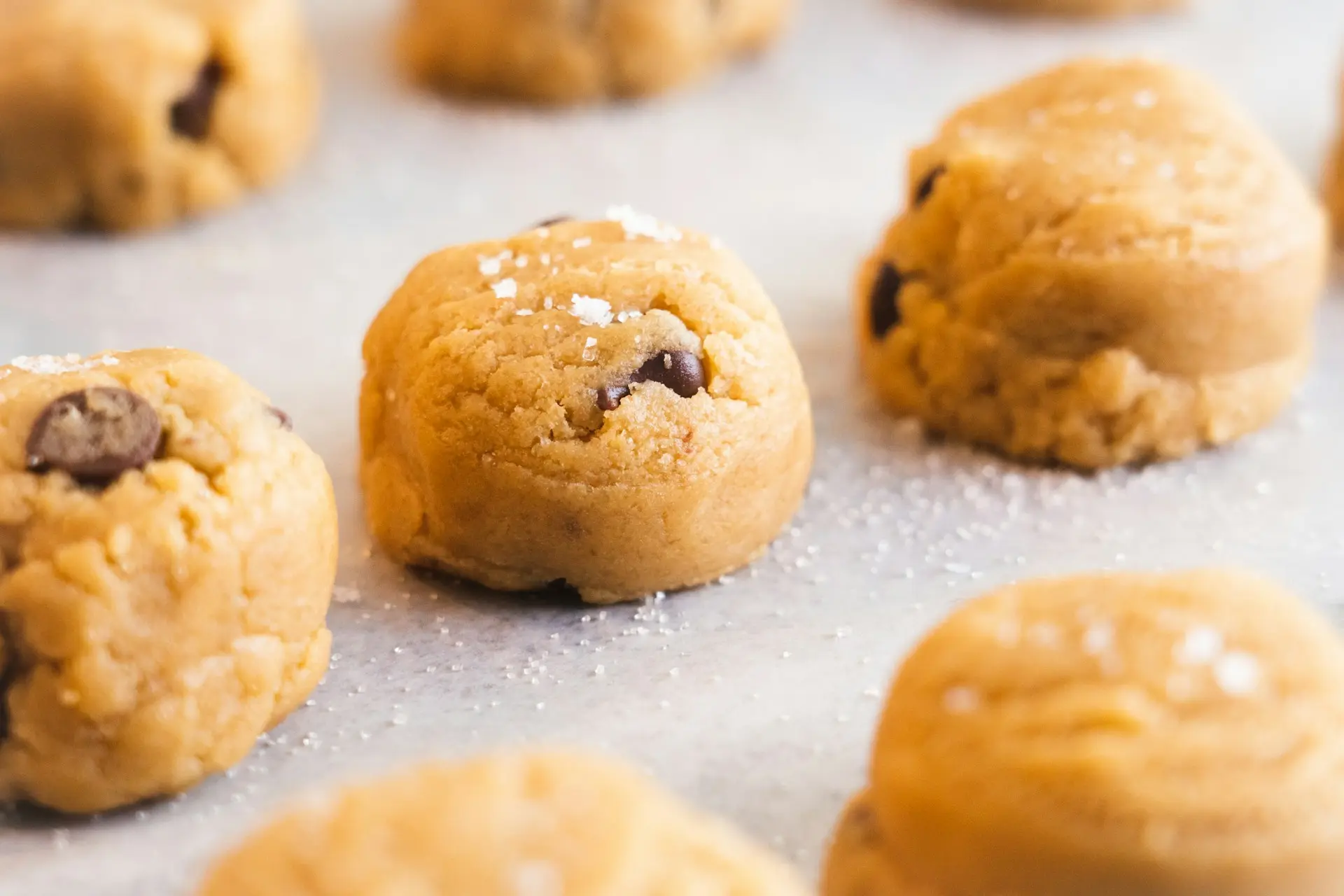 - Roll into 1‑inch balls, place on sheet, flatten slightly.